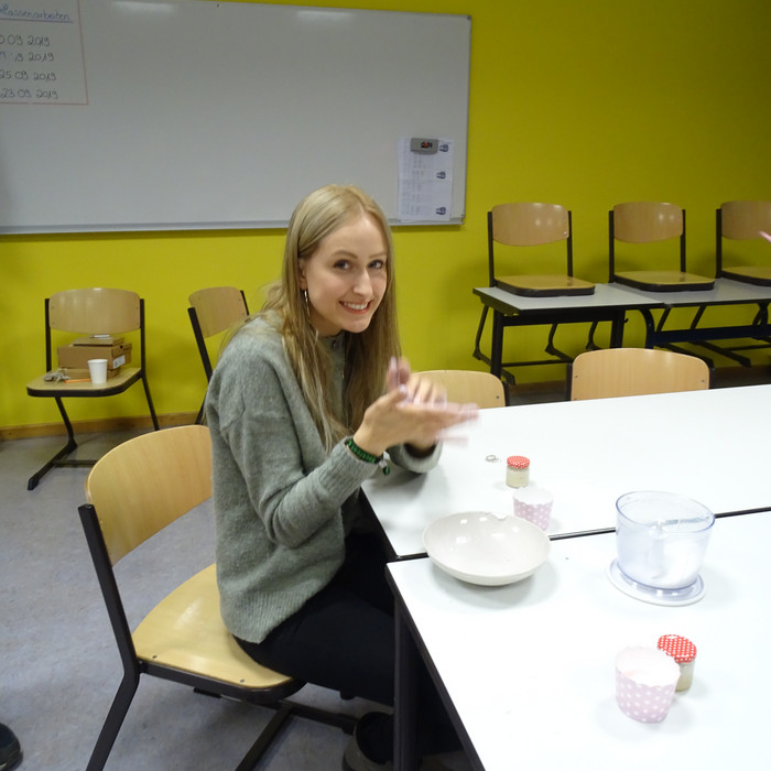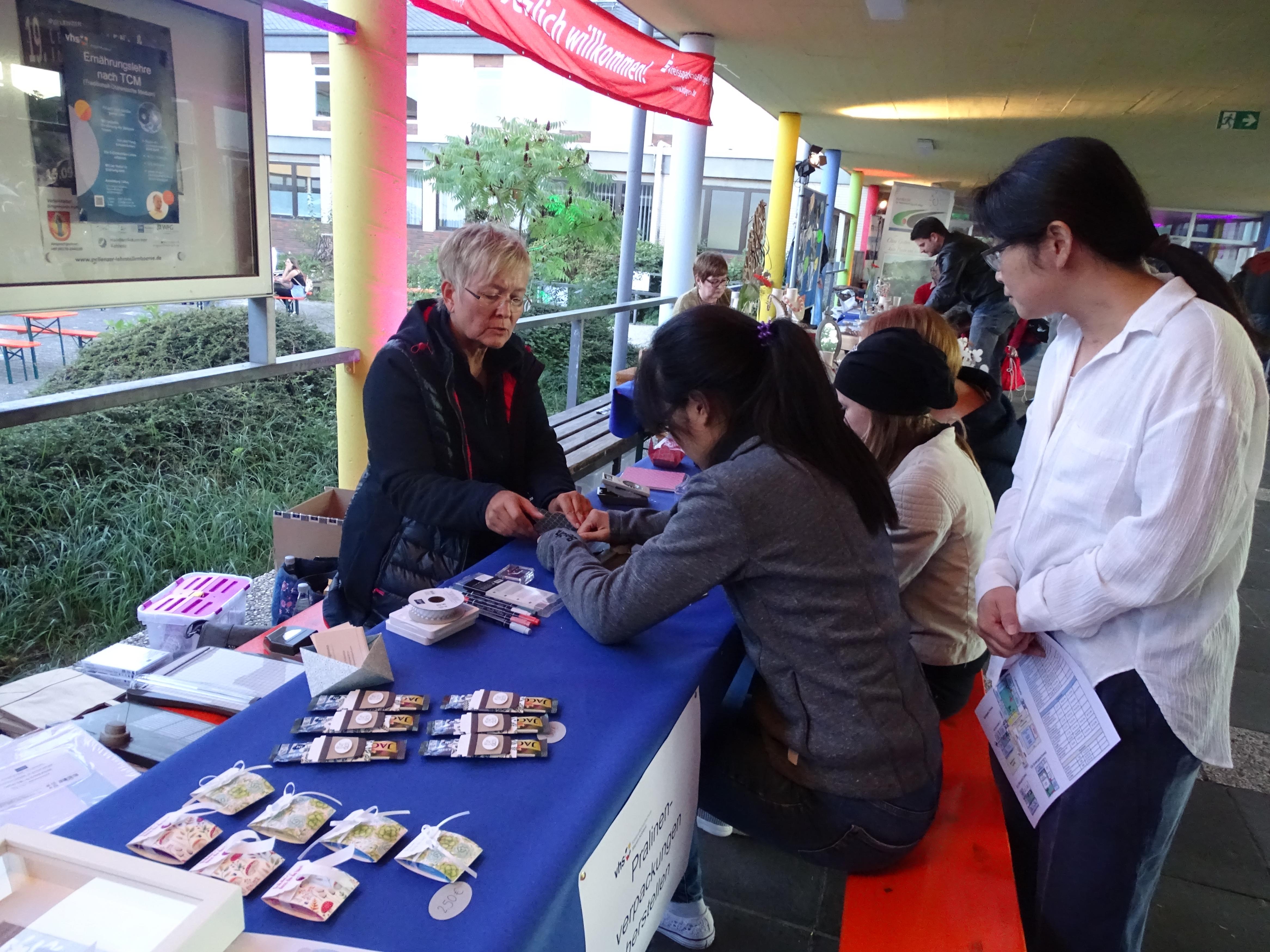 Kreativ wurde es, indem man zum Beispiel in den angebotenen Workshops das eigene Armband gestaltete, die eigene Lavendel-Seife herstellte, sich beim töpfern oder auch beim Malen ausprobierte. Die kvhs zeigte auch, dass Abfallprodukte nicht gleich Müll sind. So konnte man in dem „upcycling“-Workshop erlernen, wie aus einem Tetrapack ein hübsches kleines Portemonnaie hergestellt werden kann.